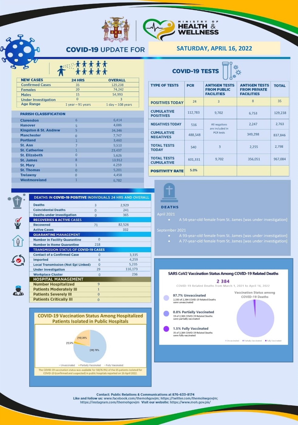 COVID-19 Clinical Management Summary for Saturday, April 16, 2022